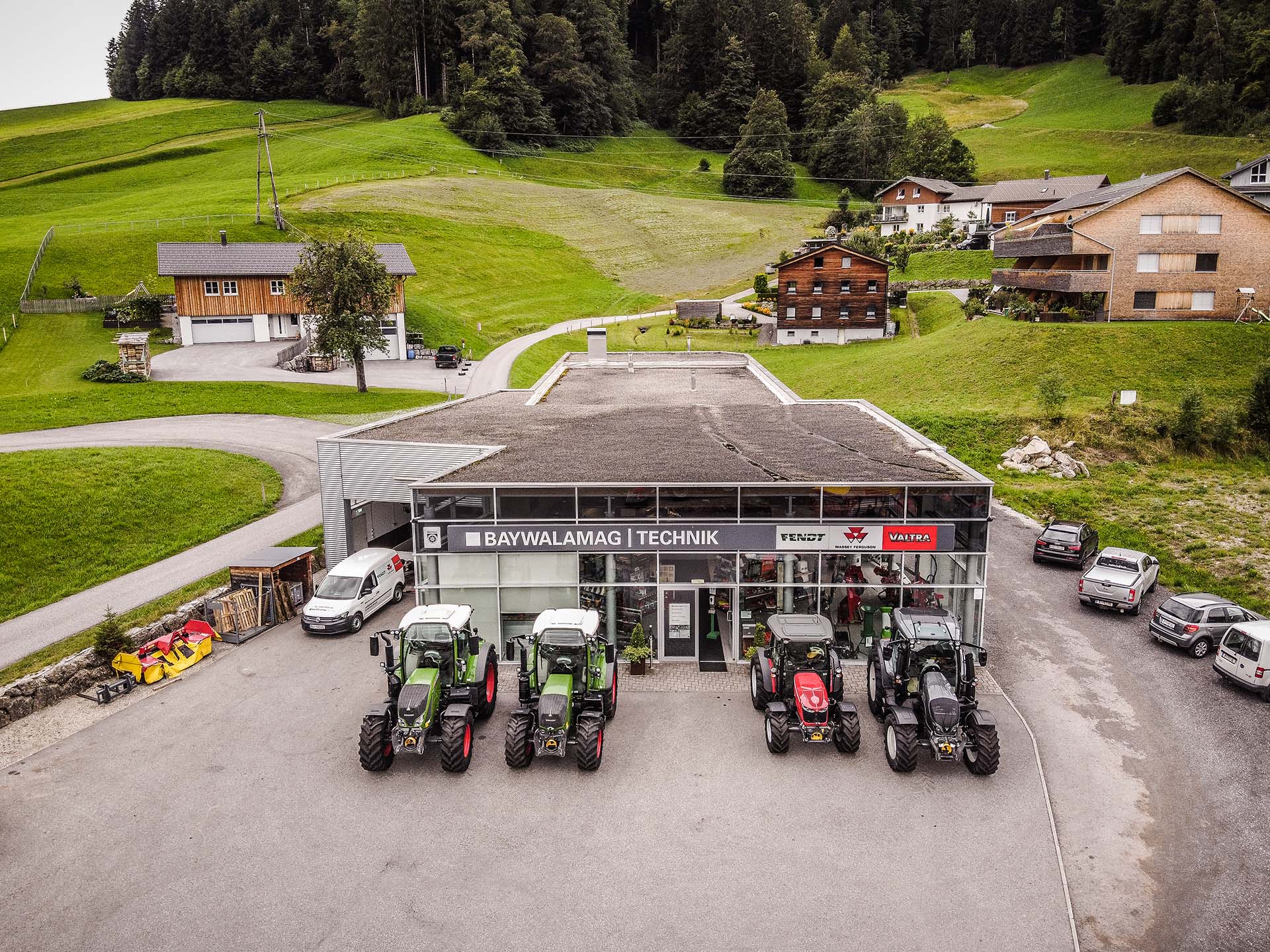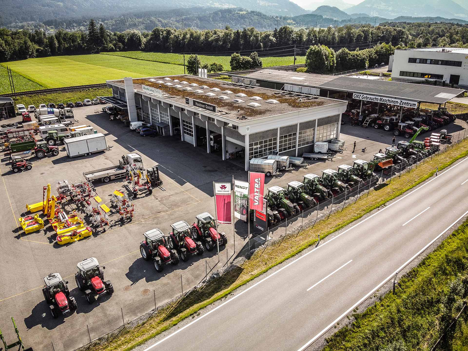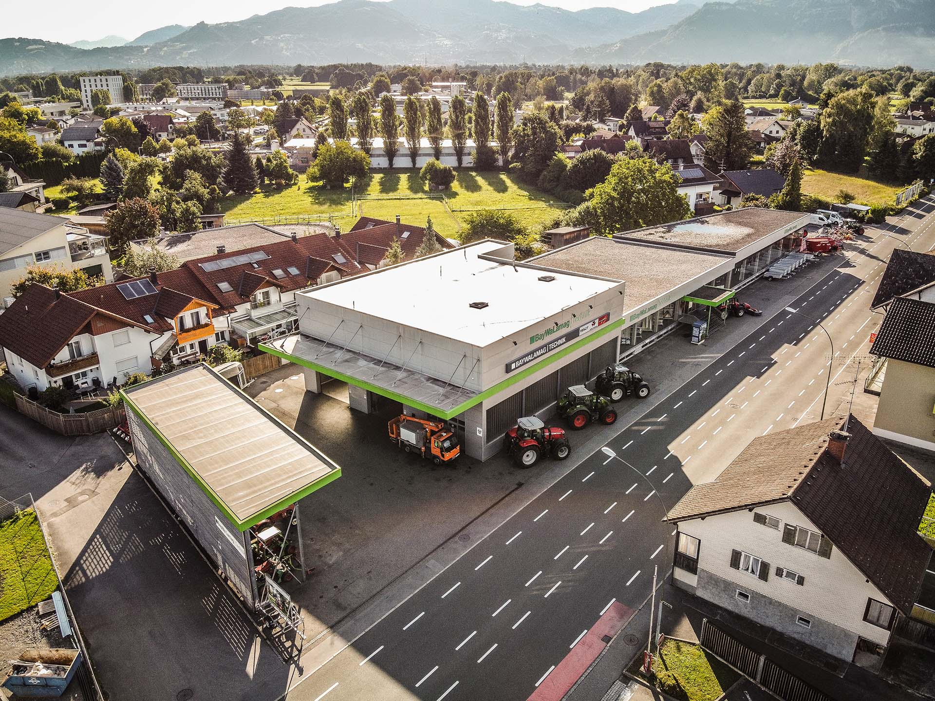 Der Standort Lustenau umfasst mit einer Betriebsfläche von ca. 3.300 m² eine neue, moderne Werkstatt mit Prüfhalle, in welcher ein Bremsprüfstand mit Rüttelplatte und Zapfwellenprüfstand Reparatur- und Servicearbeiten an sämtlichen Maschinen zur Verfügung steht.